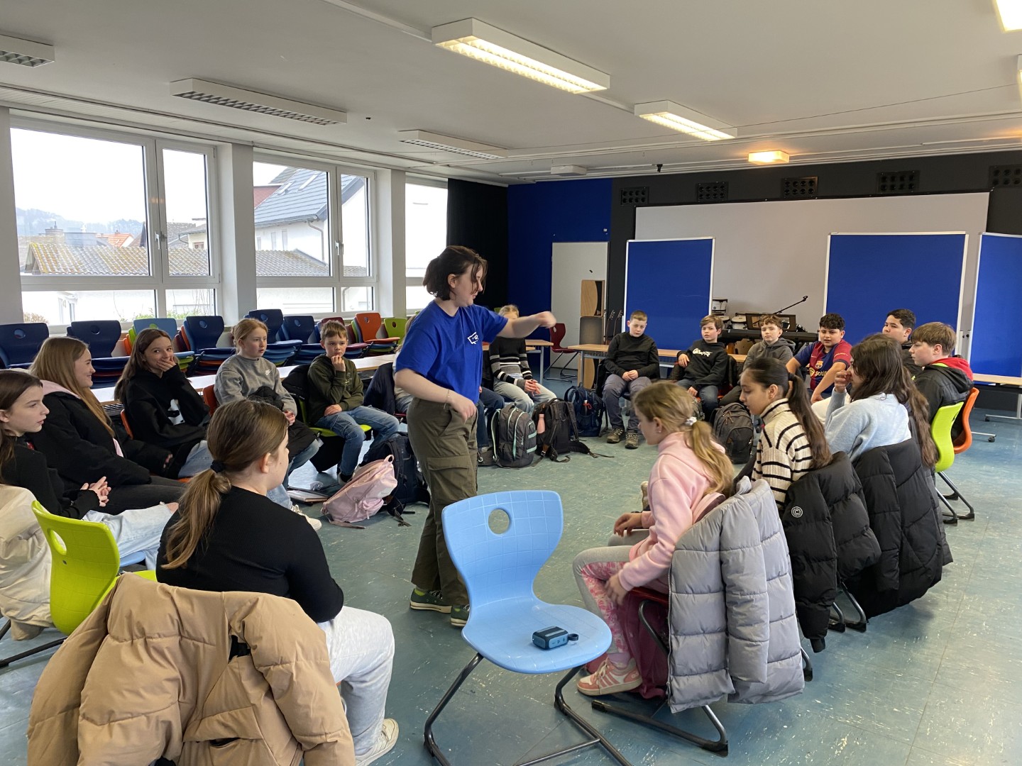 Während der gesamten Zeit sprach unsere Besucherin ausschließlich Französisch – und trotzdem konnten die Schülerinnen und Schüler erstaunlich viel verstehen! Mit Musik, abwechslungsreichen Spielen und interaktiven Übungen lernten sie erste französische Wörter und stellten fest, dass sie bereits viel mehr verstehen, als sie dachten. Jede Animation dauerte eine Schulstunde pro Klasse, sodass alle die Möglichkeit hatten, aktiv teilzunehmen und spielerisch in die französische Sprache einzutauchen.