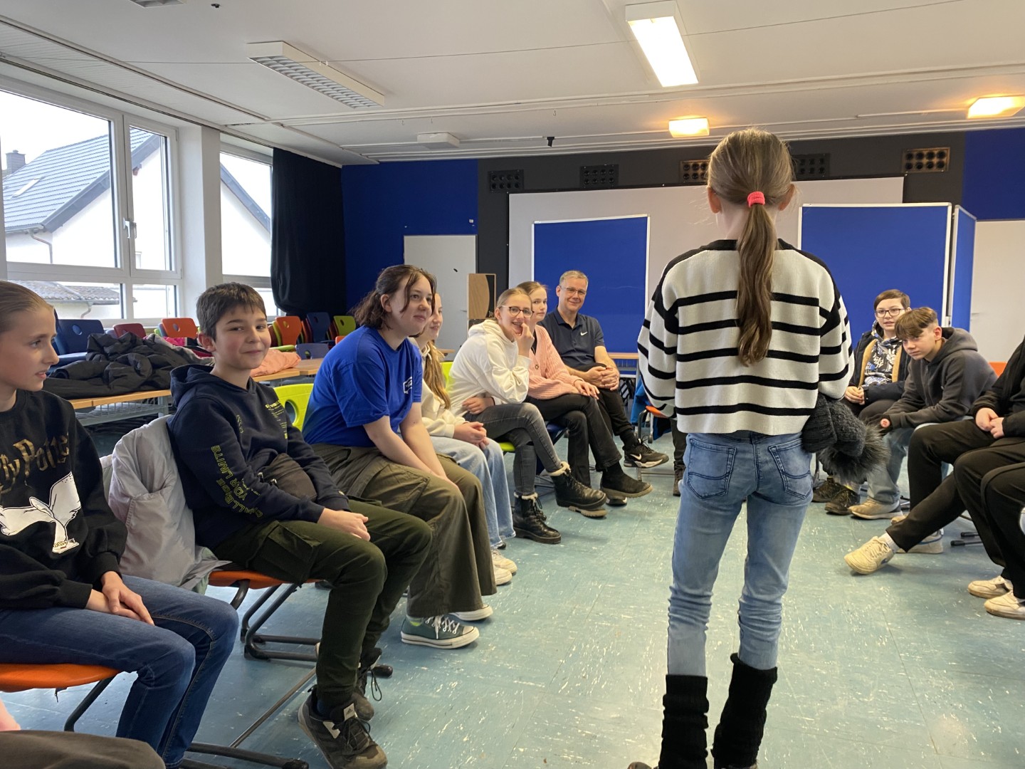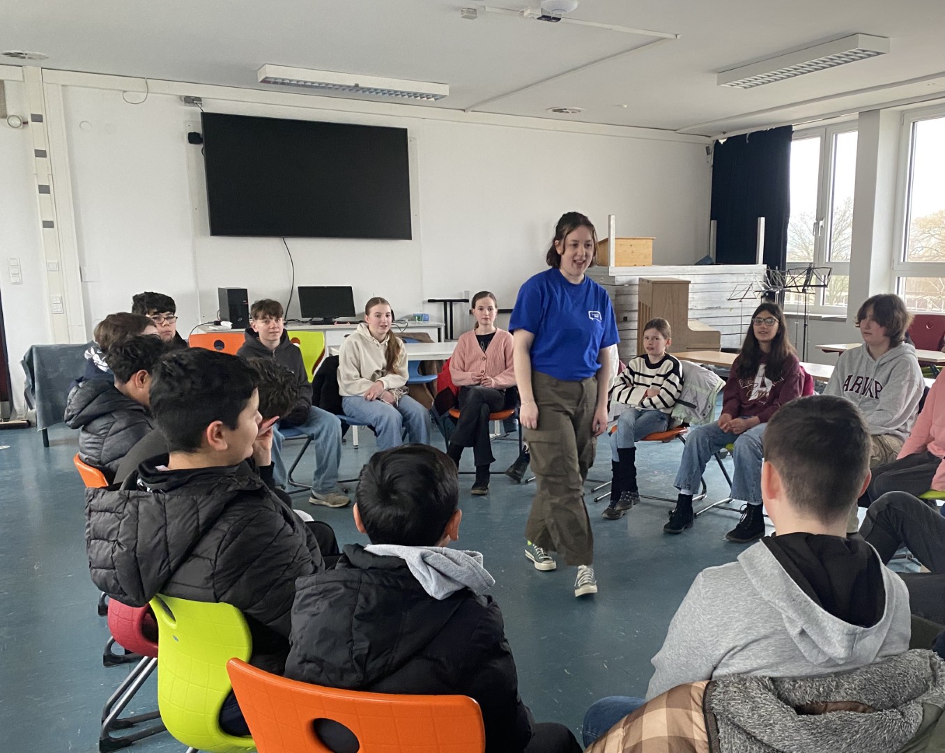 Am Dienstag, den 11. Februar, bekamen die 6. Klassen unserer Förderstufe besonderen Besuch: Die 27-jährige Französin Eliévine Frucquet aus der nordfranzösischen Stadt Arras kam mit dem FranceMobil zu uns, um den Lernenden der Jahrgangsstufe 6 die französische Sprache und Kultur näherzubringen.
