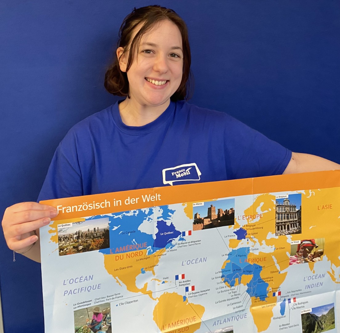 Das FranceMobil-Programm gibt es bereits seit über 20 Jahren. Jedes Schuljahr besuchen die 12 FranceMobil-Lektorinnen und -Lektoren ungefähr 900 Schulen und haben bisher mehr als 1.300.000 Lernende erreicht. Auch an unserer Schule hat der Besuch für Begeisterung gesorgt. Die Begegnung mit einer echten Französin bot eine tolle Gelegenheit, Französisch auf eine lebendige Art zu erleben und die europäische Verbundenheit zu spüren – eine tolle Erfahrung, die sicher vielen in Erinnerung bleiben wird!