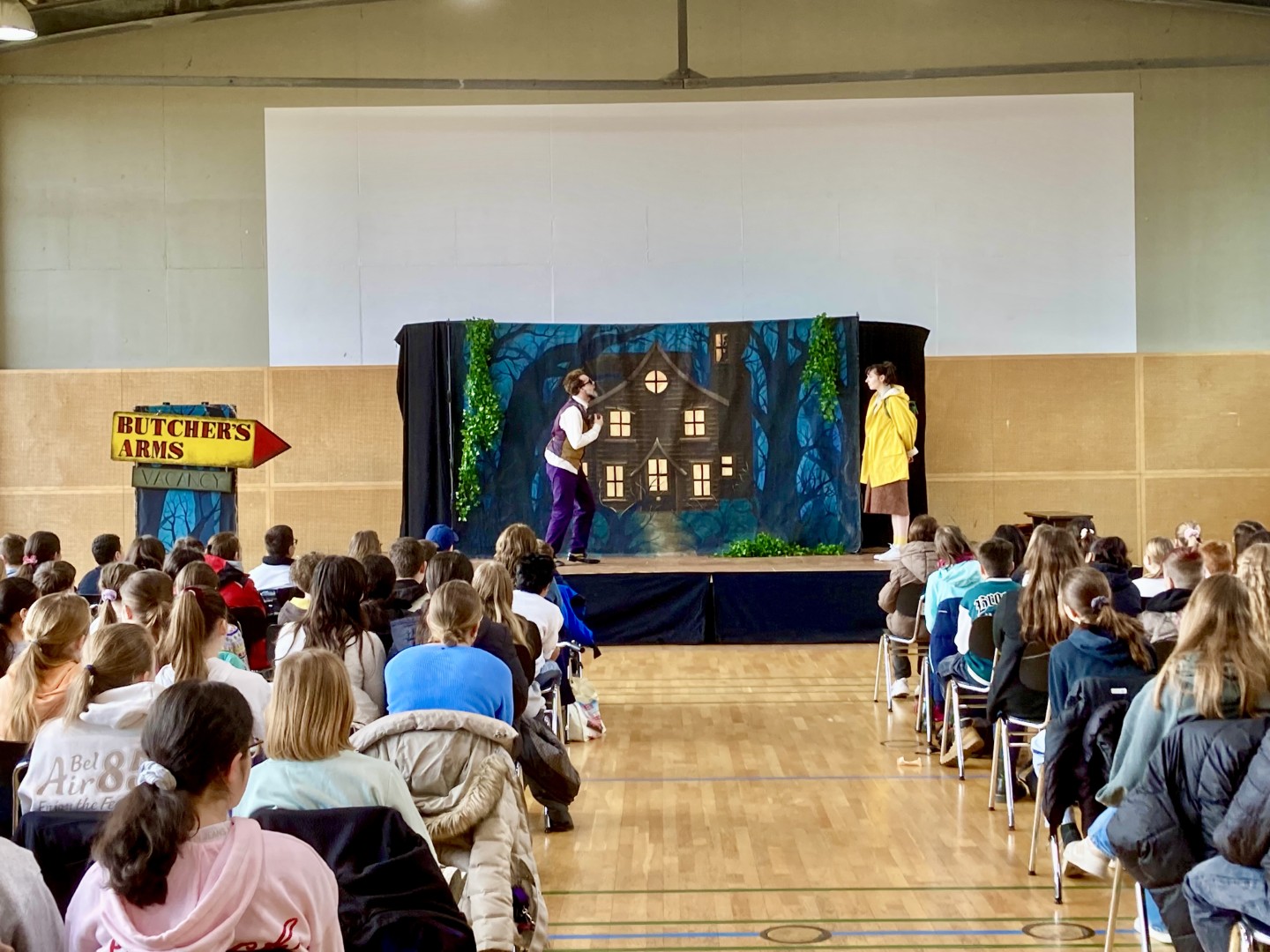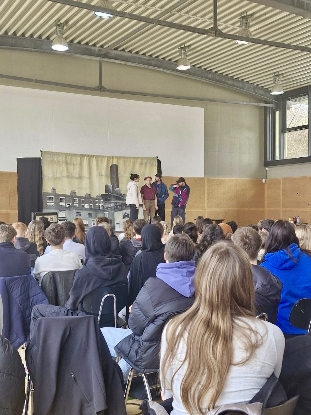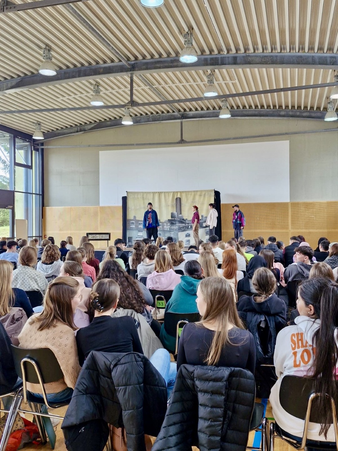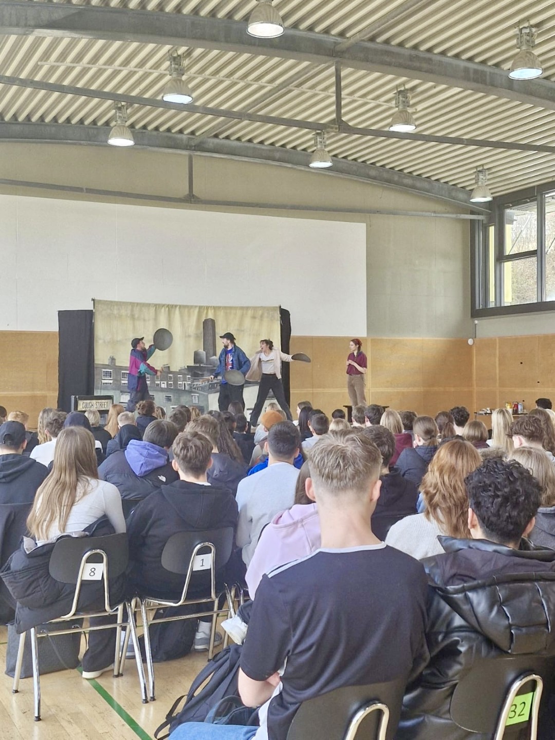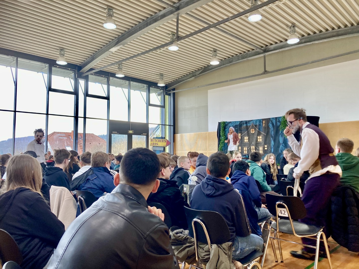 Am 12. März 2025 hatten wir das erneute Vergnügen, das englischsprachige White Horse Theatre an unserer Schule willkommen zu heißen. Vier talentierte Schauspielerinnen und Schauspieler aus Großbritannien präsentierten in der KuS zwei fesselnde Stücke, die sowohl die jüngeren als auch die älteren Jahrgänge begeisterten.