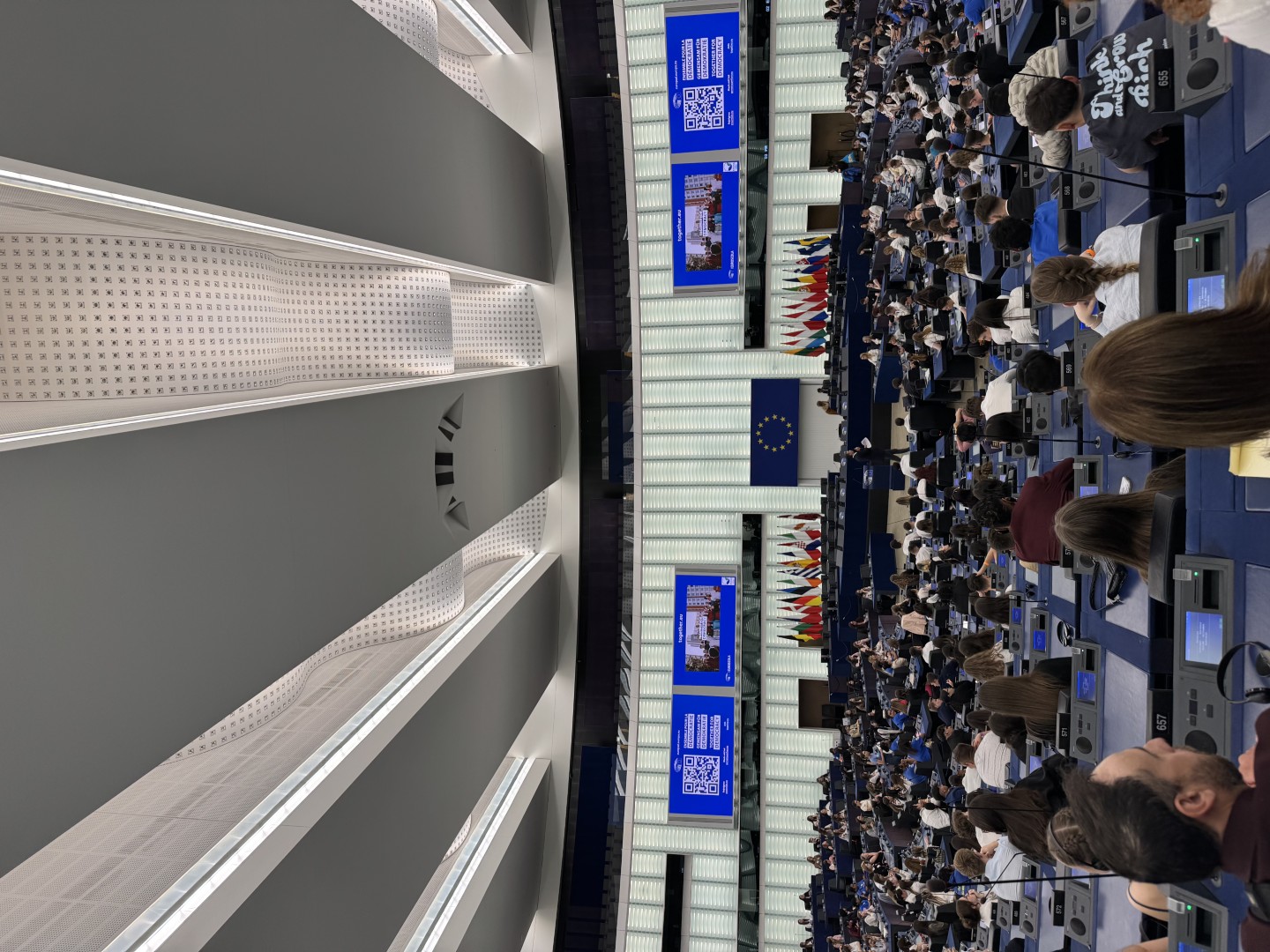 24 unserer Juniorbotschafter und zwei Seniorbotschafter hatten vom 02.-03.05. die Chance, am Euroscola-Event in Straßburg teilzunehmen. Dort kamen Schüler aus allen 27 EU-Ländern sowie aus Großbritannien und der Türkei im Plenarsaal des Parlaments zusammen, um gemeinsam mit einem der Vizepräsidenten des Parlaments zu diskutieren und selbst in die Rolle von Abgeordneten zu schlüpfen, um die Arbeitsweise der Abgeordneten nachzuvollziehen. Daneben gab‘s für unsere Gruppe Sightseeing in Straßburg, Kontakte knüpfen mit Schülern und Lehrkräften aus anderen Ländern (unter anderem auch der Gruppe aus Französisch-Polynesien im Südpazifik mit über 20 Stunden Anreise, die beim Abendessen mit Gesang für beste Stimmung im Lokal gesorgt hat), All-you-can-eat-Flammkuchen und eine rundum gute Zeit im europäischen Nachbarland!