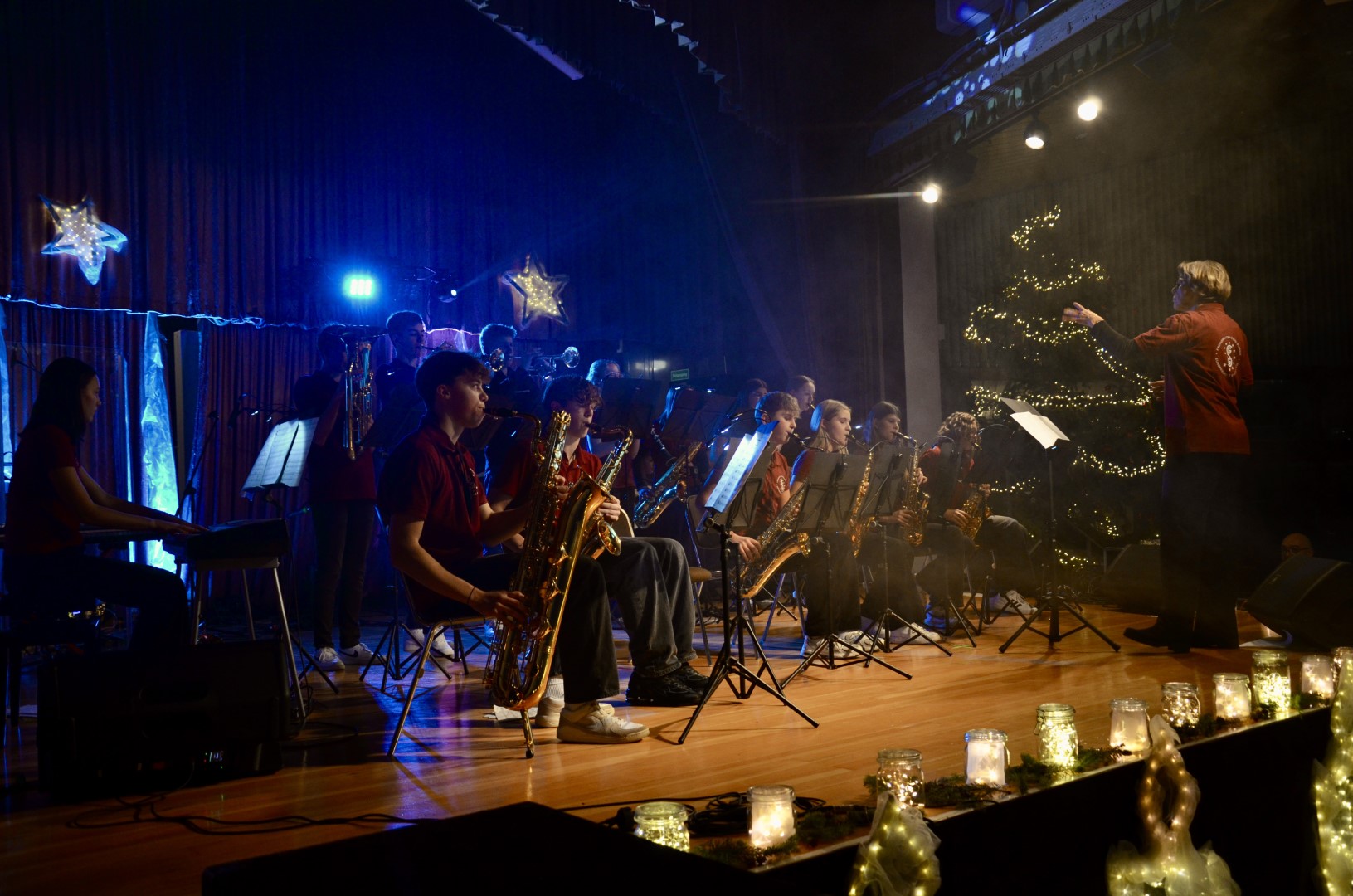 Das große Finale übernahm die Big Band, die mit einer Auswahl an fünf festlichen Stücken den Weihnachtsmusikabend ausklingen ließ. Den professionellen Auftritt haben sie mit Christina Guhl einstudiert und dem Publikum einen Einblick in ihr musikalisches Können geliefert.