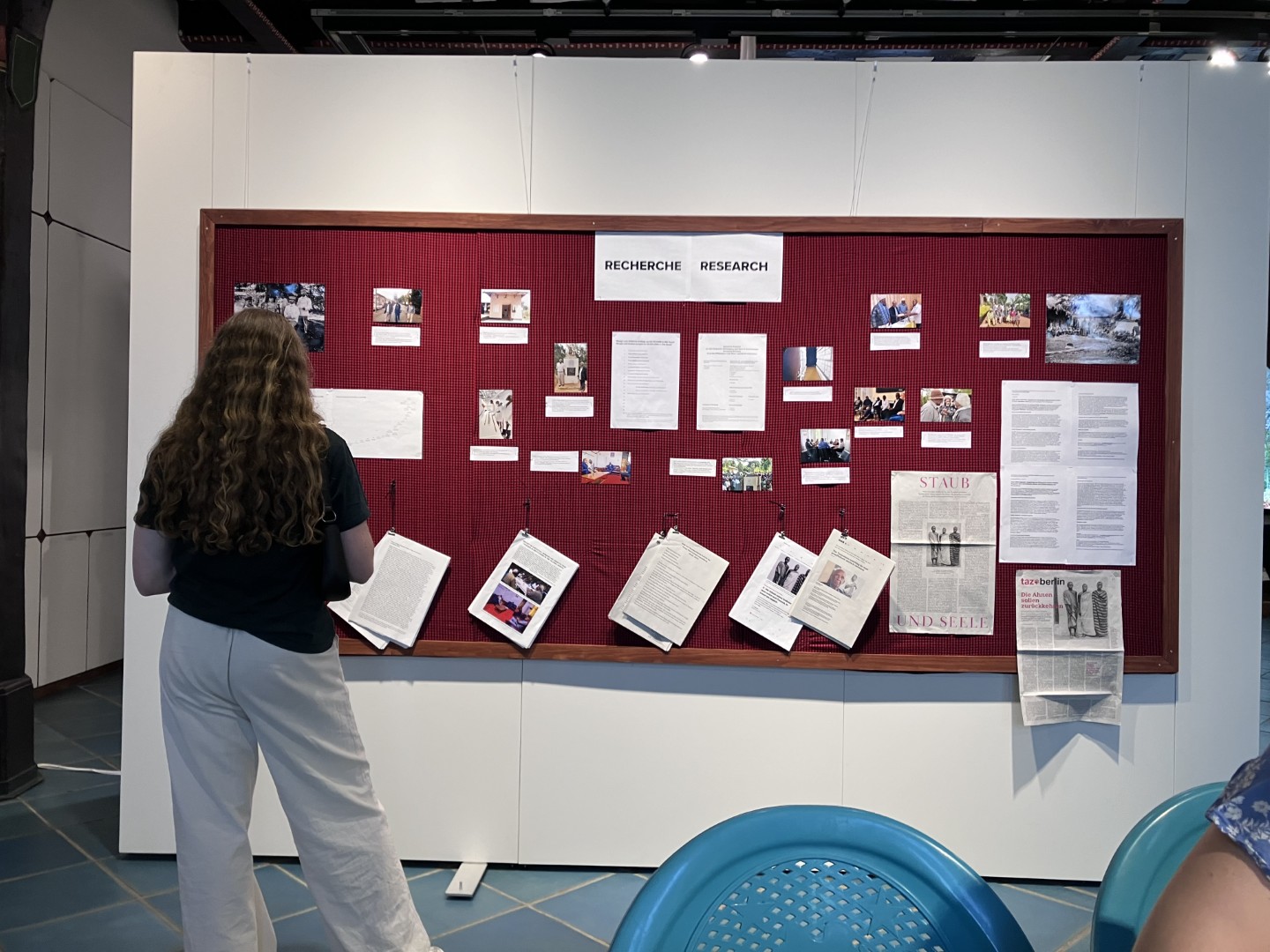 Neben den postkolonialen Fragen konnten sich die SchülerInnen intensiv mit der Entstehung der Ausstellung beschäftigen. Das Gemeinschaftsprojekt von Berlin Postkolonial, dem Old Moshi Cultural Institut etc. stellt tansanische Angehörige in den Mittelpunkt der Recherchen. So entdeckten die Gladenbacher SchülerInnen, tansanische Schulklassen, die, wie sie selbst, die Ausstellung MAREJESHO bestaunen und sich auf Spurensuche hin zu ihren eigenen Vorfahren begeben.