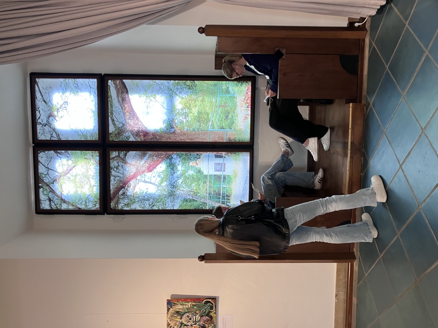 Hannah (Blieder), Zoe, Ida, Hannah (Bösser) und Fabio besuchten gemeinsam mit S. Schiebel, J. Kalabis, J. Bunte und K. Guhl im Marburger Rathaus die multimediale Ausstellung MAREJESHO – Ruf nach Wiedergutmachung.